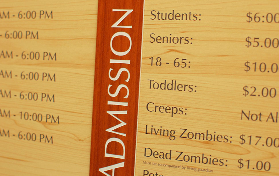 Custom laser cut signs are in high demand by all kinds of enterprises. Engraving signage for hotels, hospitals, museums, schools, etc. are all profitable options to add to your current product lines. Laser engraving machines allow you to both cut and etch all kinds of materials to create everything from simple directional signage to very intricate custom signs.